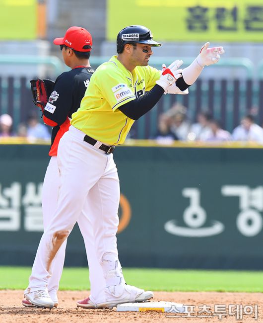 [인천=스포츠투데이 팽현준 기자] 11일 인천SSG 랜더스필드에서 열린 2025 KBO리그 KIA 타이거즈와 SSG 랜더스의 경기, 3회말 2사 2루 SSG 맥브롬이 적시 2루타를 때리고 있다. 2025.05.11. [스포츠투데이 팽현준 기자 sports@stoo.com]