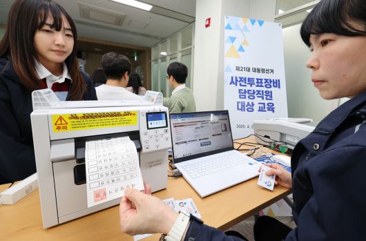 제21대 대통령선거를 36일 앞둔 지난달 28일 인천 미추홀구 인천시선거관리위원회에서 시내 시·군 선거관리위원회 담당 공무원들이 사전투표 교육을 받고 있다. 연합뉴스 |