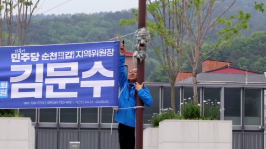 국민의힘이 단일화 진통 끝에 김문수 대선후보를 최종 후보로 결정하고 후보 등록을 마친 가운데 전남 순천에서는 ‘김문수 현수막’이 철거됐다.