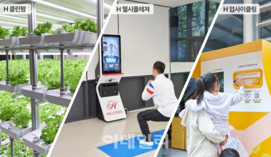현대건설은 AI 기술 ‘H 시리즈’인 H 클린팜, H 헬시플레져, H 업사이클링(왼쪽부터) 등이 단지 내 접목된 모습.(사진=현대건설) |