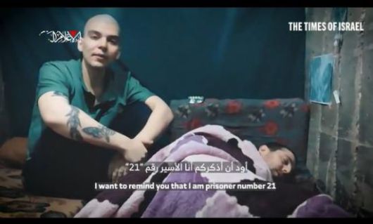 10일(현지시간) 하마스가 공개한 이스라엘 인질 영상 캡처 장면. 타임스오브이스라엘 홈페이지 |