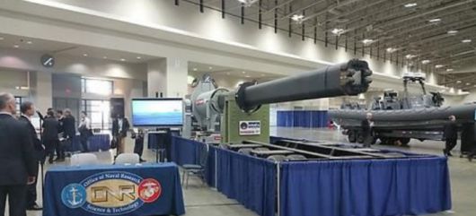 2015년 2월 미국에서 열린 '해군 미래전력 엑스포'에서 선보인 '레일건' 시제품. 연합뉴스 |