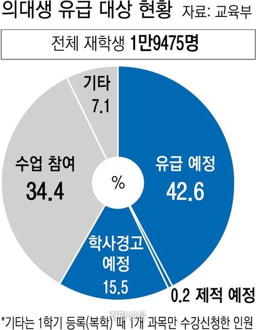 11일 취재를 종합하면 대학들은 유급 사태로 인해 24·25·26학번이 동시에 1학년 수업을 들어야 하는 만큼 대응 방안을 강구하고 있다. 교육부는 지난 7일 기준 전국 40개 의대에서 재학생 1만9475명 중 8305명(42.6%)이 유급 예정이며, 46명(0.2%)이 제적됐다고 밝혔다.