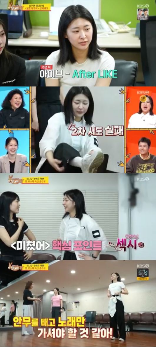 단장은 "이거 지금 봐줄 수가 없어서 무대 올라갈 수 있겠느냐. 부드럽게 하라고 했는데 너무 딱딱하다. 너무 목석 같다. 안무 빼고 노래만 가셔야 될 것 같다"고 지적했다.