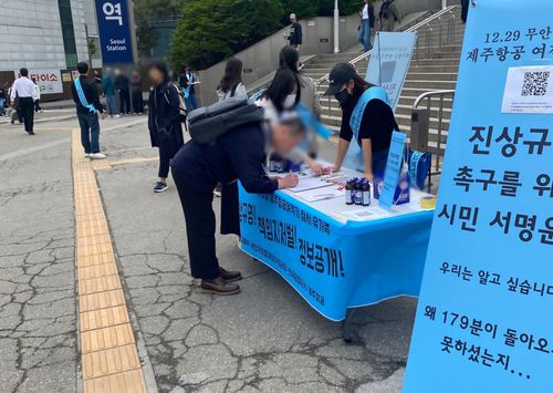 지난해 179명의 목숨을 앗아간 제주항공 여객기 참사 유가족들이 오늘(11일) 서울역 앞에서 진상규명을 촉구하는 서명운동을 벌였습니다.