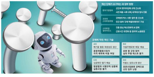 신기술로 무장한 혁신 스타트업들이 국내 규제 장벽에 갇혀 신음하고 있다. 신기술과 아이디어로 기존에 없던 새로운 비즈니스를 창출하려는 창업자들의 시도가 규제에 발목이 잡혀 있는 것이다. 정부는 기술 발전에 대비한 제도 정비라는 명분으로 오히려 새로운 규제를 쏟아내고 있다. 새 정부에서 과감한 규제 혁신이 절실한 이유다.