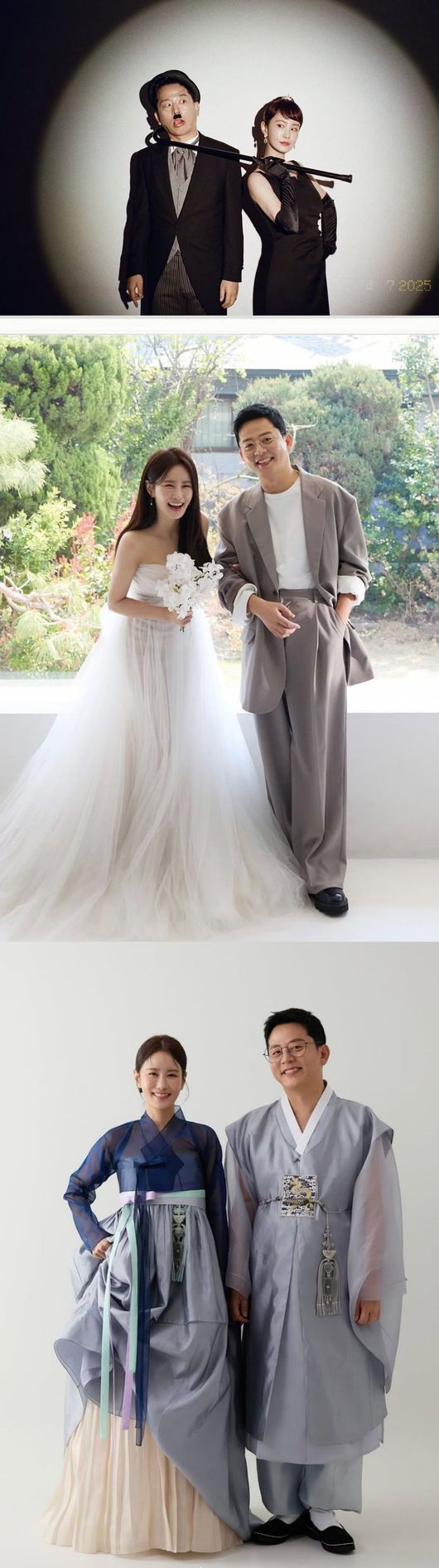공개된 화보 속 두 사람은 전통 혼례복부터 클래식한 턱시도와 드레스, 세련된 캐주얼 웨딩룩까지 다양한 콘셉트를 소화하며 예비 부부의 다채로운 매력을 보여줬다.