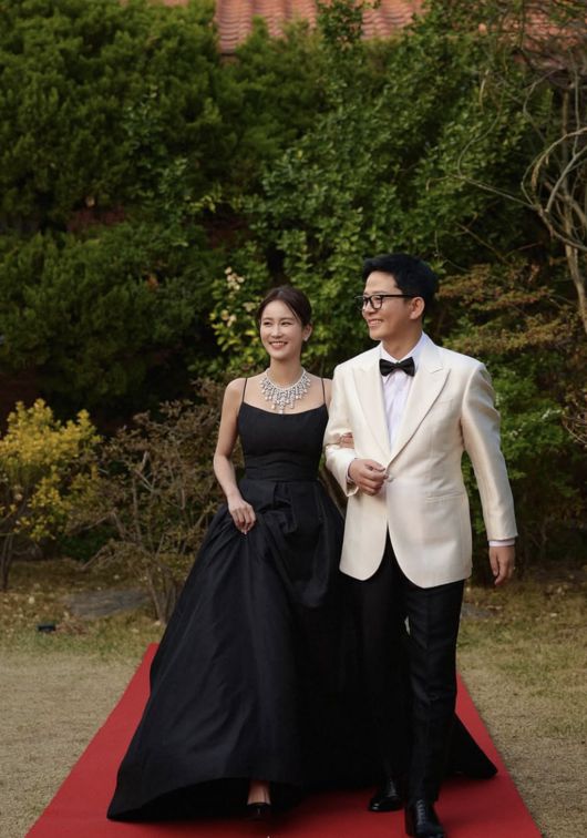 한복 차림의 컷에서는 청초한 비주얼의 김지민과 은은한 미소의 김준호가 고전미 가득한 자태로 단아한 분위기를 자아냈고, 블랙 드레스와 화이트 턱시도 룩에서는 레드카펫을 걷는 커플처럼 고급스럽고 시크한 느낌을 뽐냈다.