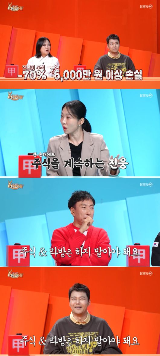 11일 방송된 KBS2 ‘사장님 귀는 당나귀 귀'(이하 ’사당귀')는 주식 공부 중인 김진웅 아나운서를 타박하는 엄지인 아나운서의 모습이 그려졌다.