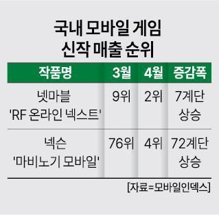 이달 들어서도 흥행 흐름은 이어지고 있다. 지난달 28일부터 이달 4일까지 주간 매출 지표서 마비노기 모바일은 3위, RF 온라인 넥스트는 5위를 각각 차지했다.