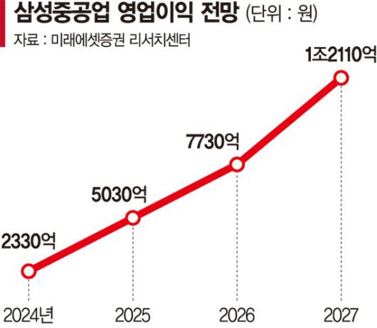 11일 증권사들은 삼성중공업의 올해 영업이익을 5030억원으로 전망했다. 이는 지난해 2330억원 대비 2배 가까이 늘어난 규모다. 더욱이 2026년 7730억원, 2027년에는 1조2110억원을 달성하며 '영업이익 1조원 시대' 개막을 점쳤다. 해당 기간 영업이익률은 △2024년 5.1% △2025년 7.0% △2026년 9.5% △2027년 10.2%로 10%의 벽을 깨는 시간이 찾아올 것으로 예상했다.
