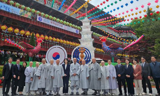 더불어민주당 이재명 대선 후보의 부인 김혜경 여사가 지난 6일 춘천 삼운사와 평창 월정사를 방문, 강원 불심 잡기에 나섰다. 사진은 삼운사를 방문한 김혜경 여사가 기념촬영 하는 모습. 연합뉴스 |