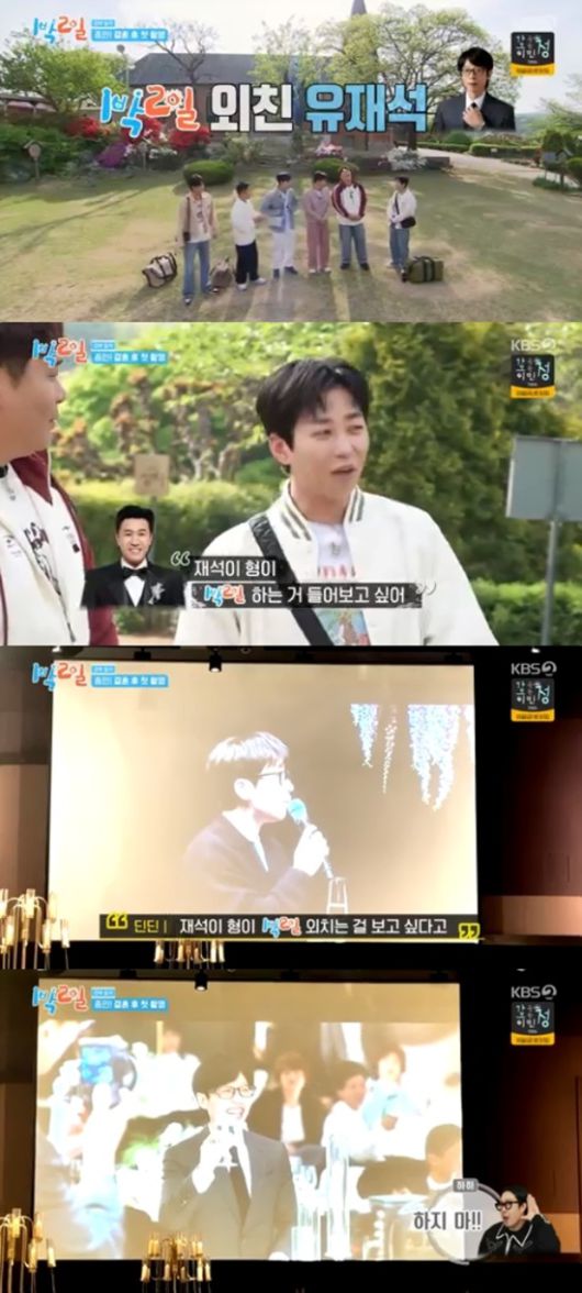 '1박 2일'과 동시간대 프로그램인 '런닝맨'에 출연 중인 유재석은 김종민 결혼식에서 하하의 만류에도 불구하고 '1박 2일'을 외친 것으로 드러났다.
