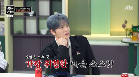 김재중의 냉장고에는 빨간 소스가 가득했다. 매운 음식을 좋아한다는 김재중은 “우리나라에서 매운 거 안 먹어본 거 없다”라며 맵부심을 부렸다. 냉장고 안에 있는 소스 하나를 가리킨 김재중은 빨간맛 끝판왕이라는 매운 소스라며 매운 라면에 200배라고 설명했다.
