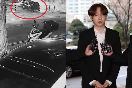 지난 8일 새벽 인천시 남동구 구월동 편도 4차로 도로에서 무면허 음주운전 차량이 중앙선을 넘어가 마주 오던 SUV(빨간 원)와 충돌한 모습. 오른쪽은 지난달 27일 음주운전을 해 입건된 가수 남태현. 채널A 보도화면 캡처‧연합뉴스 |