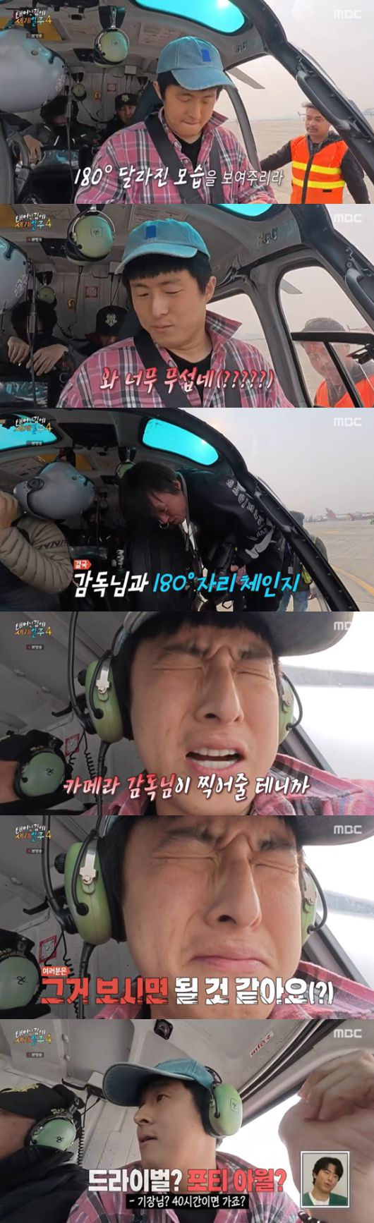 (엑스포츠뉴스 우선미 기자) 기안84가 헬기를 타고 이동하던 중 두려움에 휩싸여 카메라 감독에게 의지하는 모습을 보였다.