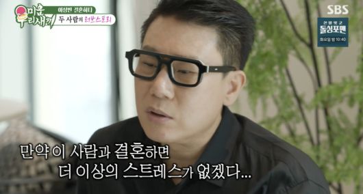 또 이상민은 "만약 이 사람과 결혼하면 더 이상의 스트레스가 없겠다 싶었다"라고 털어놓았다.