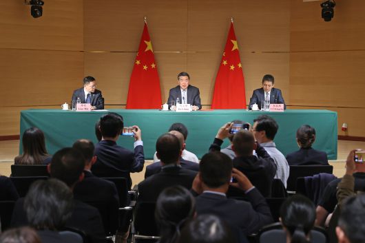 허리펑(가운데) 중국 부총리가 11일 스위스 제네바에서 미중 관세 협상 종료 직후 진행한 기자회견에서 “회담은 솔직하고 건설적이었고, 상당한 진전을 이뤘다”고 말했다./신화 연합뉴스 |