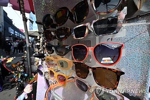 로스앤젤레스 패션디스트릭트에 진열된 중국산 선글래스 |