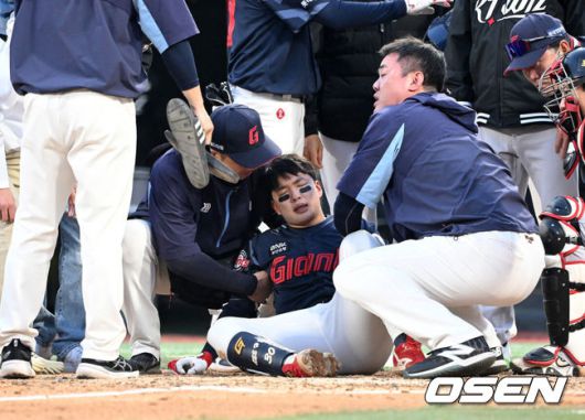 손성빈 또한 그라운드에 쓰러져 한동안 고통을 호소했다. 그라운드에 두 번째 등장한 구급차가 롯데 팬들의 탄식까지 자아냈다. 김태형 롯데 감독, 이강철 KT 감독까지 그라운드로 나와 손성빈을 심각한 표정으로 지켜봤다.