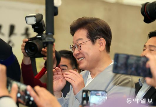이재명 더불어민주당 대선후보가 11일 전남 강진군 오감통 시장에서 열린 경청투어에서 환하게 웃고 있다. 2025.5.11 이훈구 기자 ufo@donga.com |
