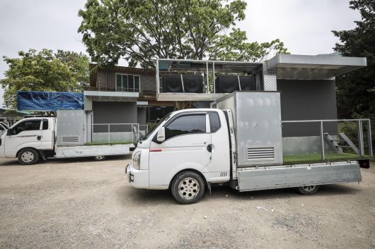 21대 대선 공식 선거 운동을 하루 앞둔 11일 경기 양주시의 국민의힘 대통령 선거 유세차량 제작을 맡은 업체에 국민의힘 선거 유세에 투입될 차량이 미완성인 채로 세워져있다. 2025.05.11. 뉴시스 |
