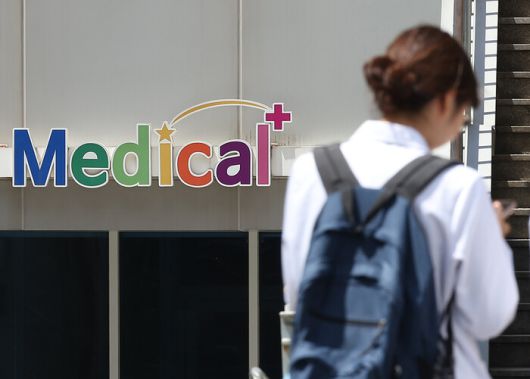 지난 7일 오전 서울 시내 한 의과대학에서 가운을 입은 학생들이 이동하고 있다. 연합뉴스