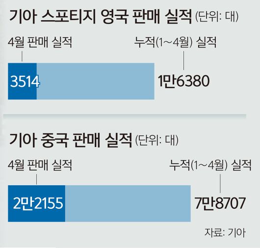 기아는 중국에서도 선전하고 있다. 기아의 중국 합작법인인 위에다기아가 지난달 2만2155대를 판매하면서 전년 동기 대비 11.8% 증가한 실적을 쌓았다. 1~4월 누적 판매량은 7만8707대로, 전년 동기 대비 12.7% 늘었다.