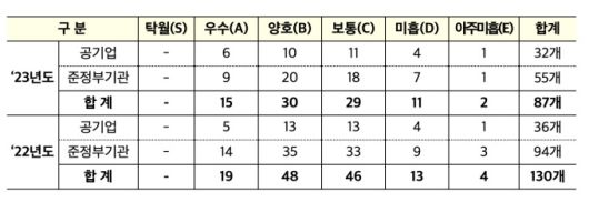 2023년도 공기업·준정부기관 경영실적 평가 결과 [자료=기획재정부] 2024.06.19 biggerthanseoul@newspim.com |