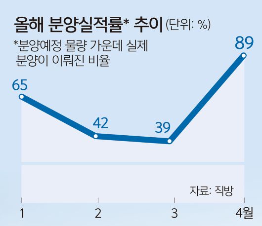 직방 관계자는 “4월 분양실적률이 예상보다 크게 반등한 가운데 5월 분양시장의 실적이 어떻게 나타날지 귀추가 주목된다”고 짚었다.