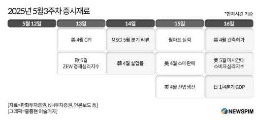 나정환 NH투자증권 연구원도 차주 미국 4월 CPI, 소매판매 등이 발표될 예정이나, 관세의 영향이 온전히 반영한 수치는 아니라는 점에서 영향은 제한적이다"고 말했다.
