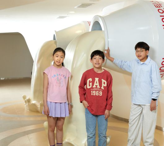 임서희 학생모델과 김산하·박준후(왼쪽부터) 학생기자가 유산균을 쉽게 섭취할 수 있는 방법 중 하나인 발효유를 만드는 hy(옛 한국야쿠르트) 공장을 찾아 유산균에 대해 알아보고 발효유 제조 과정도 살펴봤다. |