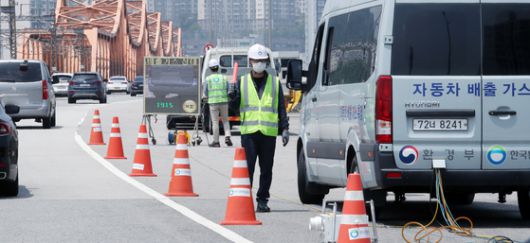 환경부 직원들이 비대면 운행차 배출가스 단속을 하고 있는 모습. 사진은 기사와 직접 관련 없음. 뉴스1 |
