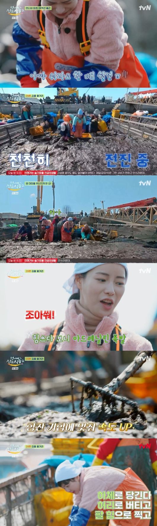 (엑스포츠뉴스 우선미 기자) 28톤 무게의 김 하역 현장에 멤버들의 곡소리가 난무했다.
