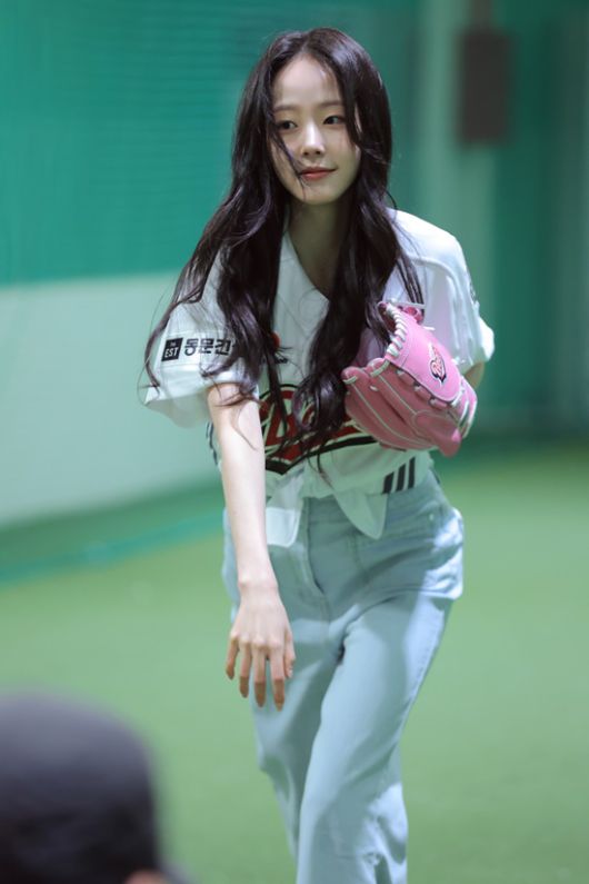 (엑스포츠뉴스 김유진 기자) 배우 채원빈이 시구에 나서 관중들의 뜨거운 환호를 받았다.