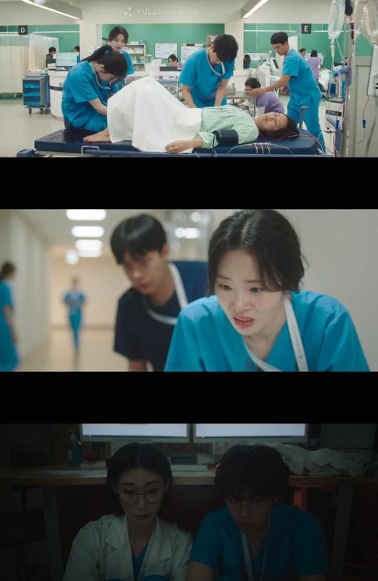 특히 엄재일은 김사비와 단둘이 아무도 없는 외래 병동에서 맛있는 것을 나눠 먹으며 묘한 설렘을 자아냈다. 외래 병동에는 종로 율제병원을 방문한 율제 본원의 '익송' 커플 이익준(조정석 분)과 채송화(전미도 분)부터 막 사랑을 피워내고 있는 '오구' 커플 오이영, 구도원까지 연인들이 모여 있었다. 여전히 유쾌하고 서로를 위하는 이익준과 채송화의 모습은 반가움을 더했다.