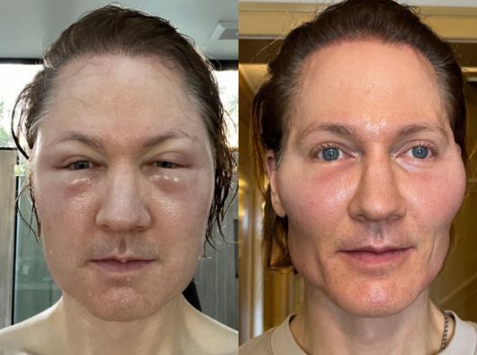 앞서 지난해 레누바로 부작용을 겪은 것으로 알려진 미국 억만장자 존슨은 시술 직후 얼굴에 나타난 알러지 반응을 공개했다.