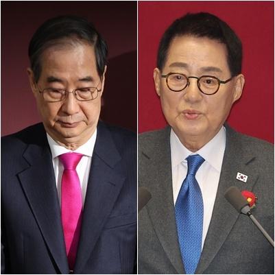 한덕수 전 국무총리(왼쪽)와 박지원 더불어민주당 의원(오른쪽). [연합] |