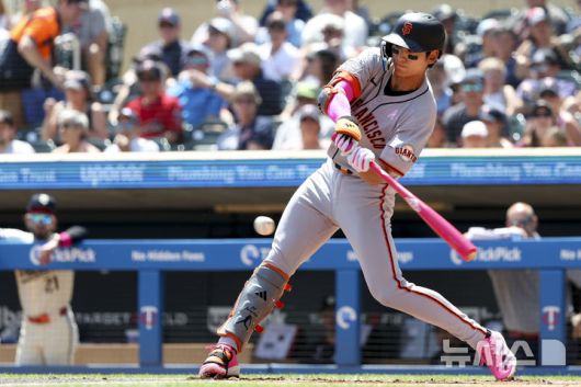 [미니애폴리스=AP/뉴시스] 샌프란시스코 자이언츠의 이정후가 11일(현지 시간) 미 미네소타주 미니애폴리스의 타깃 필드에서 열린 2025 메이저리그 미네소타 트윈스와의 경기 1회 초 좌전 안타를 치고 있다. 이정후는 4타수 1안타 1타점 1득점을 기록했고 샌프란시스코는 연장 끝에 6-7로 패했다. 2025.05.08. |
