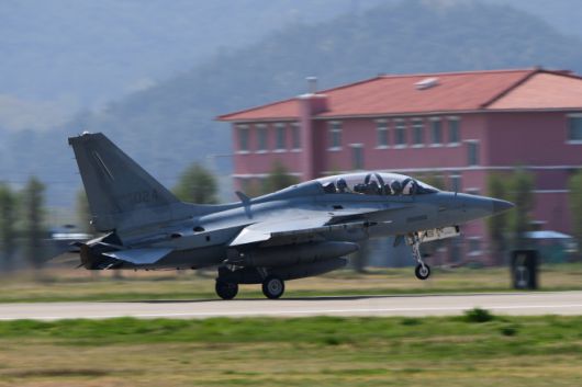 한미공군이 4월 17일부터 5월 2일까지 공군 광주기지에서 대규모 연합공중훈련 '프리덤 플래그' 훈련을 실시한다고 밝혔다. 사진은 광주기지 활주로에 착륙하고 있는 한국 공군의 FA-50 전투기. /연합 |