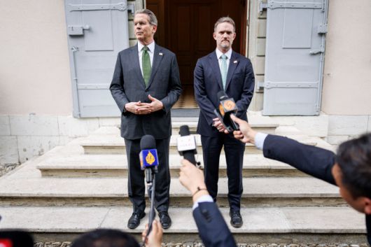 스콧 베센트(왼쪽)미국 재무부 장관과 제이미슨 그리어 미국 무역대표부(USTR) 대표가 11일(현지시간) 스위스 제네바에 위치한 주유엔 스위스 대사관 관저에서 미국과 중국 고위 관료들 간의 관세 관련 회담 후 취재진에 브리핑하고 있다. (사진=AFP) |