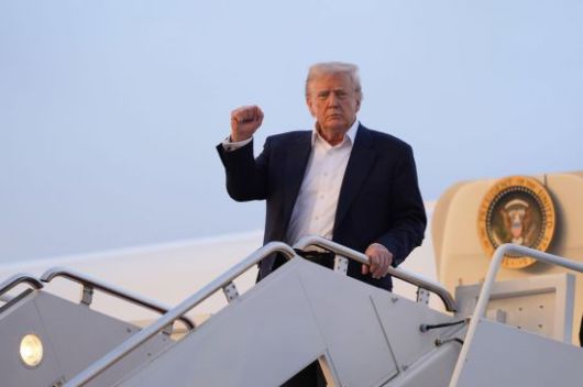 에어포스원을 탑승한 도널드 트럼프 미국 대통령. AP연합뉴스 |