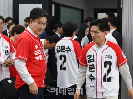 [이데일리 이영훈 기자] 김문수 국민의힘 대선 후보가 12일 오전 서울 영등포구 여의도 국민의힘 중앙당사에서 열린 중앙선대위 임명장 수여식에 참석하고 있다.