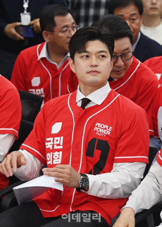 [이데일리 이영훈 기자] 국민의힘 비상대책위원장으로 내정된 김용태 국민의힘 중앙선거대책위원회 공동선거대책 위원장이 12일 오전 서울 영등포구 여의도 국민의힘 중앙당사에서 열린 중앙선대위 회의 및 중앙선대위 임명장 수여식에 참석하고 있다.