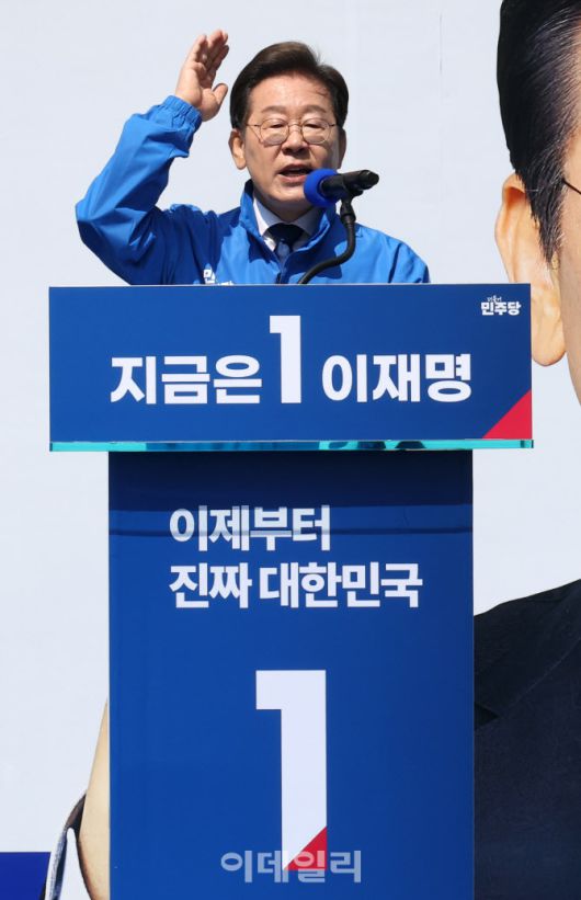 [포토]첫 유세에서 연설하는 이재명 더불어민주당 대선 후보