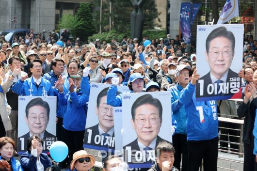 [포토]이재명 더불어민주당 대선 후보 연설 경청하는 유권자들