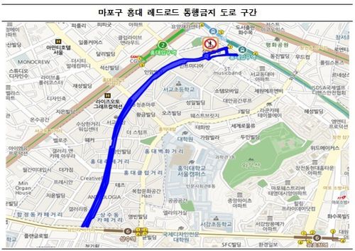 또 홍대 레드로드의 경우, 인파 밀집 지역이 아닌 주택가를 제외한 R1∼R6 구간으로 축소 지정했다.