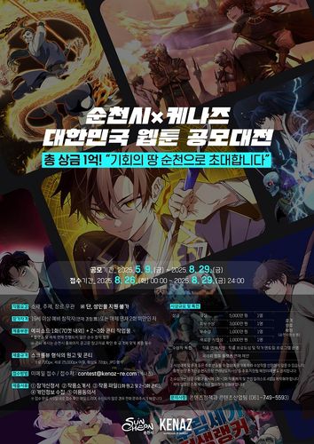 케나즈와 함께하는 웹툰 공모 대전은 총상금 1억 원 규모로, 19세 이상 예비 창작자와 매체 연재 2회 미만의 창작자를 대상으로 한다.