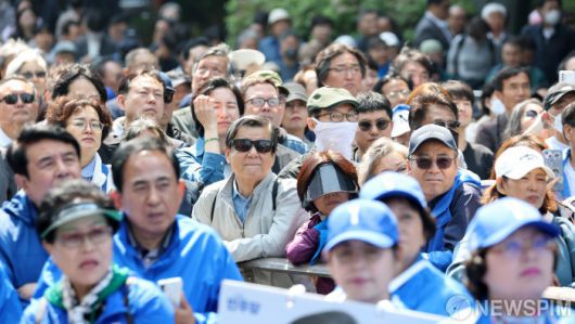 청계광장에 집결한 이재명 대선 후보의 지지자들