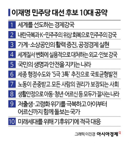 민주당 선대위는 이날 이 같은 내용의 10대 공약을 중앙선거관리위원회에 제출했다고 밝혔다.